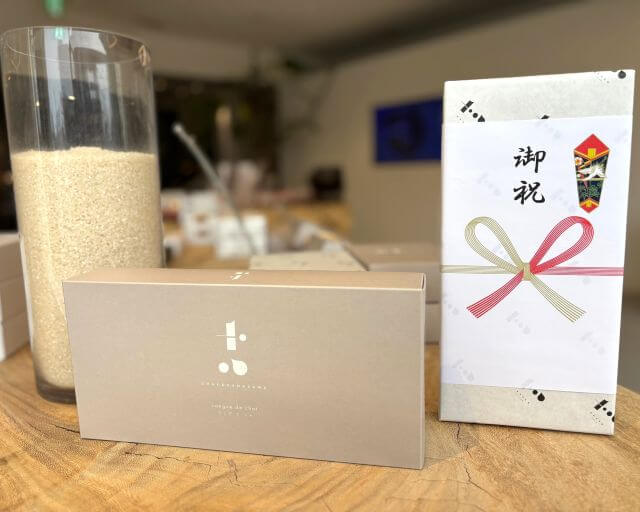 (左)包装無し (右)包装あり・熨斗付きのバージョン選べます。